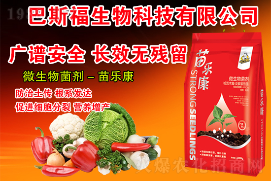 巴斯福生物科技有限公司-苗樂康,是巴斯福公司引進(jìn)國際微生物技術(shù),經(jīng)特殊培養(yǎng)和發(fā)酵精心研制而成的新型微生物菌劑,具有廣譜、、長效、等特點,是目前綜合預(yù)防作物根部病害和根結(jié)線蟲的理想制劑。