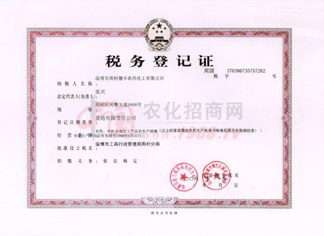 • 稅務登記證稅務登記證