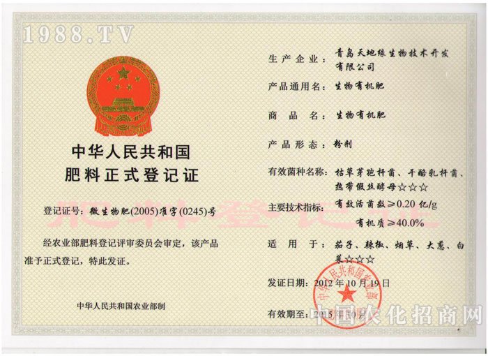 青島天地緣生物技術(shù)開發(fā)有限公司以“為了子孫后代”為企業(yè)發(fā)展的宗旨,追求更大的生態(tài)效益、社會(huì)效益。
